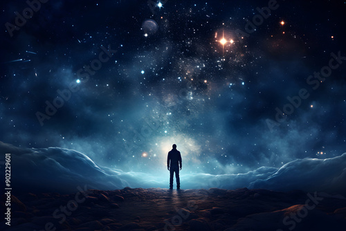Escapism Through Dreamy Cosmos: A Man's Flight from Reality Towards the Boundless Starry Night