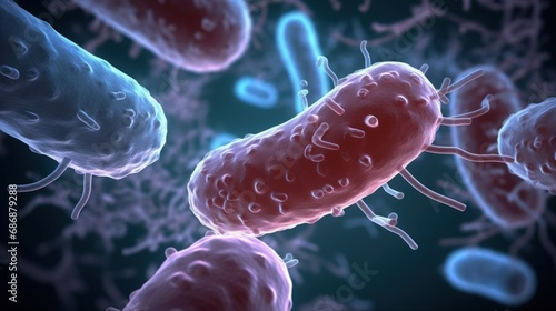 Escherichia Coli , E. Coli Bacterial Strains, Health and Food Safety microcosm, organismal and human biology science and research.