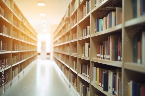 Espaço interior da biblioteca pública turva. Fundo do conceito de aprendizagem e educação. estantes desfocadas