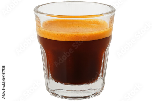 Espresso coffee with crema foam filling a small transparent glass, isolated on a transparent background