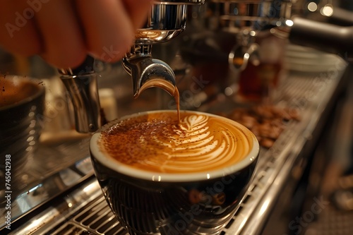 Espresso Machine Pouring Coffee into Latte Art Cup Ai generated