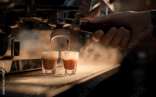 espresso machine pouring espresso coffee