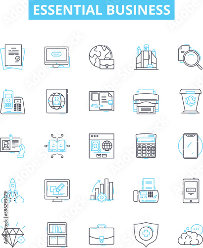 Essential business vector line icons set. Business, Essential, Startup, Management, Planning, Strategies, Profit illustration outline concept symbols and signs