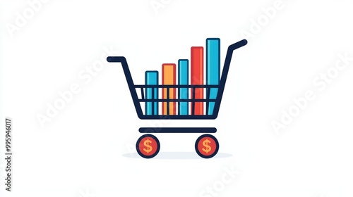 Essential Marketing Vector Icons - Dollar Sign, Shopping Cart, Bar Chart on White Background