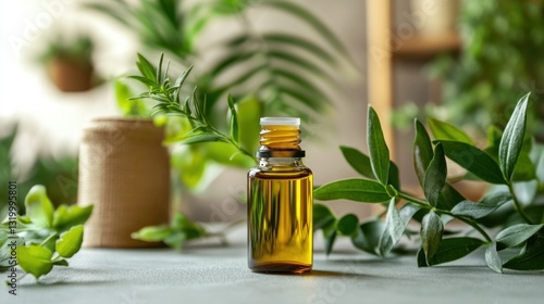 Essential Oil Bottle with Greenery: Natural Aromatherapy