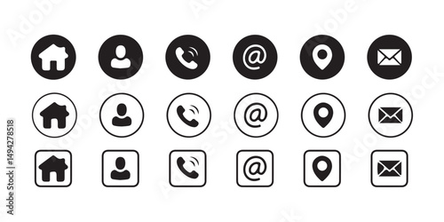 Essential Profile & Contact Icons – Home, User, Email, Phone & Map Symbols for Website & Mobile App Design
