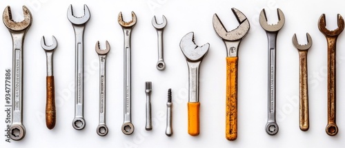 Essential Tools. Wrenches, Screwdrivers, and Pliers on White