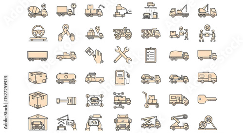Essential Trucking Icons Collection A Versatile Set for Transportation Logistics and Vehicle Design Projects and Web Development Solutions