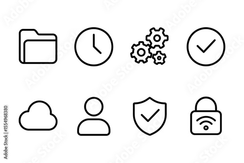 Essential vector icons set for digital and security concepts, vector illustration
