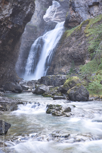 Estrecho waterfall in Ordesa y Monte Perdido National Park, in the Aragonese Pyrenees, located in Huesca, Spain.