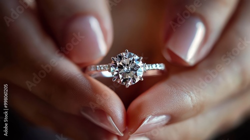 Eternal Love and Prosperity: Hands Holding Diamond Ring Close-up