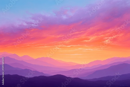 Eternal Sunset Mirage over Tranquil Mountain Range Scenic Artwork Peaceful Landscape Serene Viewpoint