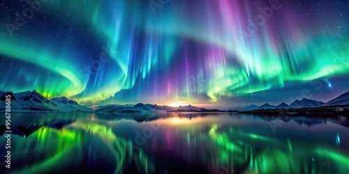 Ethereal and mysterious aurora , Northern lights, night sky, celestial, colorful, glowing, magical, nature