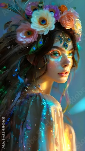 "Ethereal Beauty: A Fantasy Portrait of Surreal Elegance and Vibrant Colors"