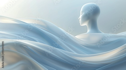 Ethereal blue mannequin enveloped in flowing fabric