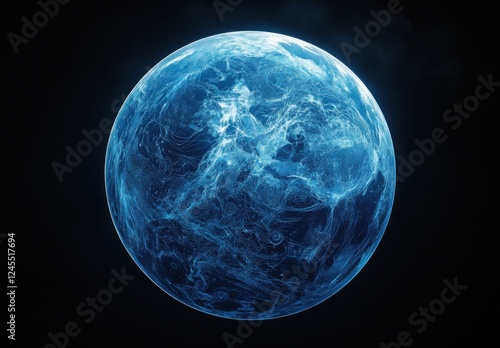 Ethereal Blue Planet with Mystical Swirls in Dark Space, Captivating Cosmic Scene, Ideal for Science Fiction and Astronomy Themes
