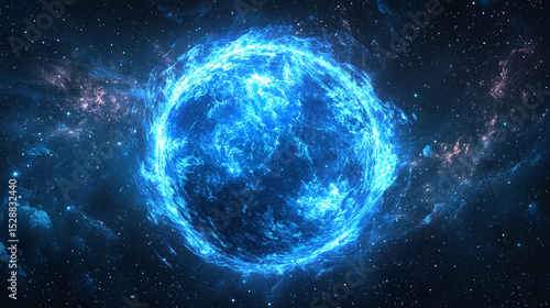 Ethereal Blue Sphere Illuminates Starry Night, Creating a Mesmerizing Cosmic Energy Display