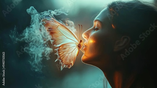 Ethereal Butterfly with Vivid Rainbow-Colored Wings: A Stunning Poster for Sporty Interiors, Showcasing Intricate Textures and Paint-Splash Edges Against a Dark Backdrop