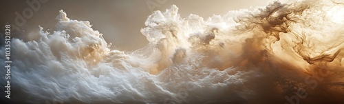 Ethereal clouds in soft hues of orange and white display a breathtaking natural scene, evoking a sense of tranquility and wonder.