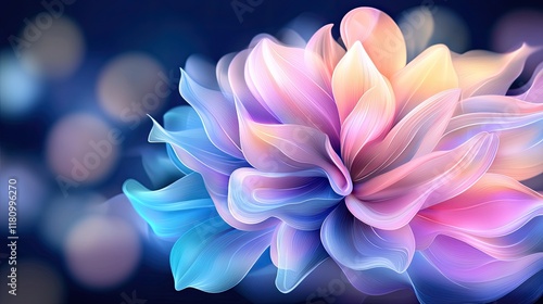 Ethereal Colorful Abstract Flower with Swirling Petals and Soft Glow on a Dreamy Background