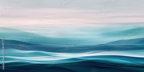 Ethereal Digital Landscape with Teal and Lavender Hills and Soft Horizon Glow