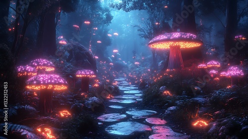 Ethereal fairy forest glowing mushrooms waterfall peaceful enchanted wonderland
