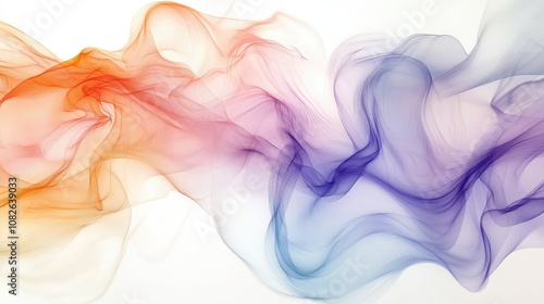 Ethereal Flow of Colorful Smoke Waves in Orange, Purple, and Blue Shades Over a Soft White Background for Abstract Art and Design Projects
