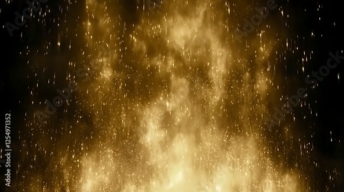 Ethereal Gold Rain and Dust Swirling in Dark Space Creating a Dramatic Mystical Atmosphere
