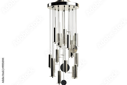 Ethereal Harmonies: A Metal Wind Chime Swinging Gracefully From the Ceiling on White or PNG Transparent Background.