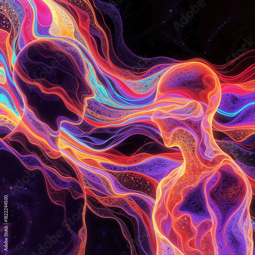 Ethereal Human Silhouettes in Cosmic Rainbow Energy Waves