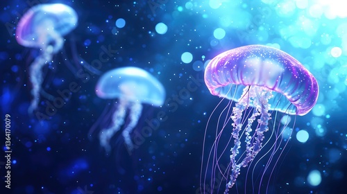 Ethereal Jellyfish Floating Gracefully in a Vibrant Ocean Environment