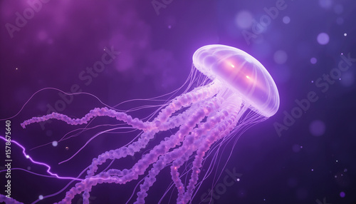 Ethereal jellyfish swimming gracefully in a purple underwater scene