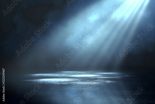Ethereal rays dramatic light and shadow in a reflective, misty realm background.