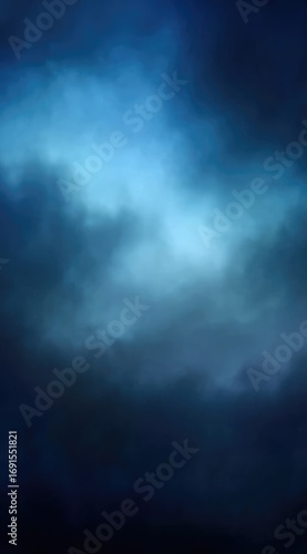 Ethereal sky with dark, swirling clouds surrounding a glowing, bright blue center. An atmospheric scene with moody and mysterious vibes