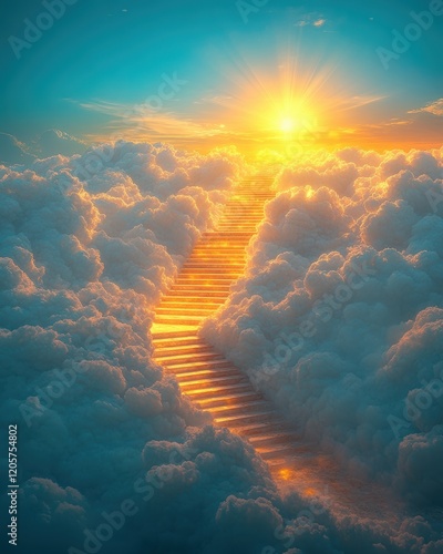 Ethereal Stairway to Heaven with Radiant Pink Sun Rays and Gleaming Marble Steps