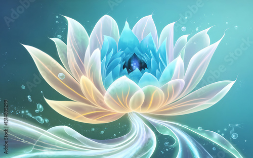 Ethereal Teal and White Lotus Flower with Glowing Stream, Fantasy Art