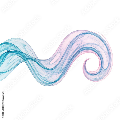 Ethereal, translucent light blue wisps, delicately curled and glowing with soft pink light against a luminous white background. Abstract peace concept