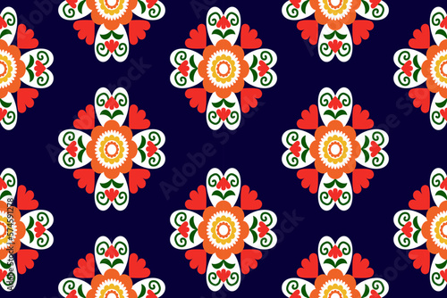 Ethnic abstract flower art. Seamless pattern in tribal, folk embroidery, and Mexican style. Aztec geometric art ornament print.Design for carpet, wallpaper, clothing, wrapping, fabric, cover, textile