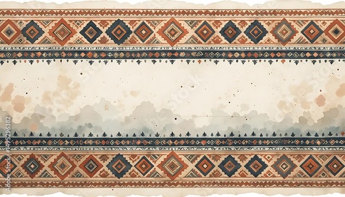 Ethnic Geometric Border Design with Watercolor Texture for Creative Projects