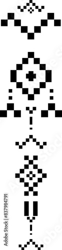 Ethnic pixel embroidery designs for rugs, curtains, pillows, bags, clothes, geometric shapes.