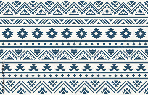 Ethnic tribal Aztec blue and white background. Seamless tribal pattern, folk embroidery, tradition geometric Aztec ornament. Tradition Native and Navaho design for fabric, textile, print, rug, paper