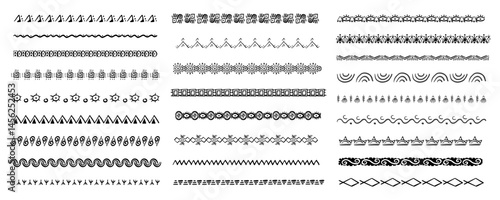 Ethnic tribal border, traditional hand drawn divider, doodle separator. Ancient motif line geometric brush, for frames, design element.