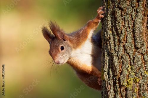 Eurasian red squirrel on a tree (Sciurus vulgaris)