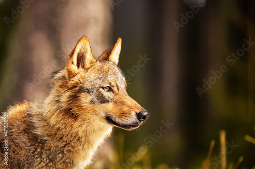 Eurasian wolf (Canis lupus lupus) good portrait very close up