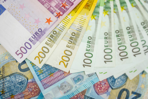 Euro cash. Many Euro banknotes of different values.