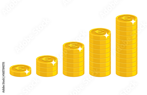 Euro coin stack. Good financial foundation start, becoming rich. Business success and economy concept. Cartoon vector illustration isolated on white background