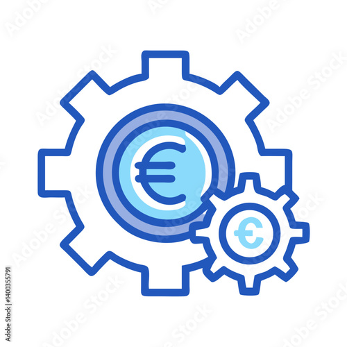 Euro Currency Gear Mechanism Icon Representing Financial Systems and Economic Operations