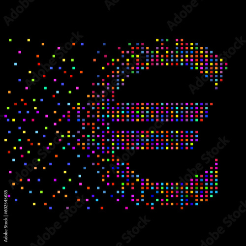 Euro of colorful pixels with an explosion. Vector illustration