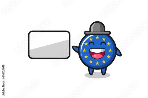 europe flag badge cartoon illustration doing a presentation