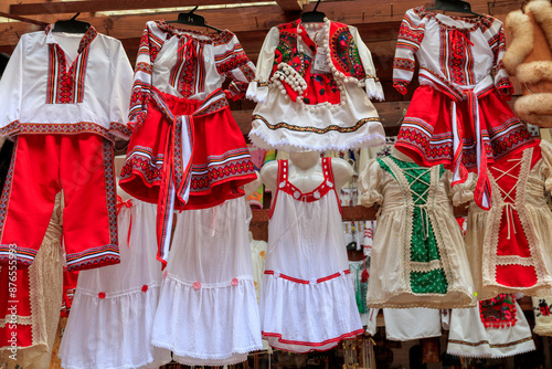 Europe, Romania. Bicazului Gorges, and Red Lake region. Traditional clothing for sale.